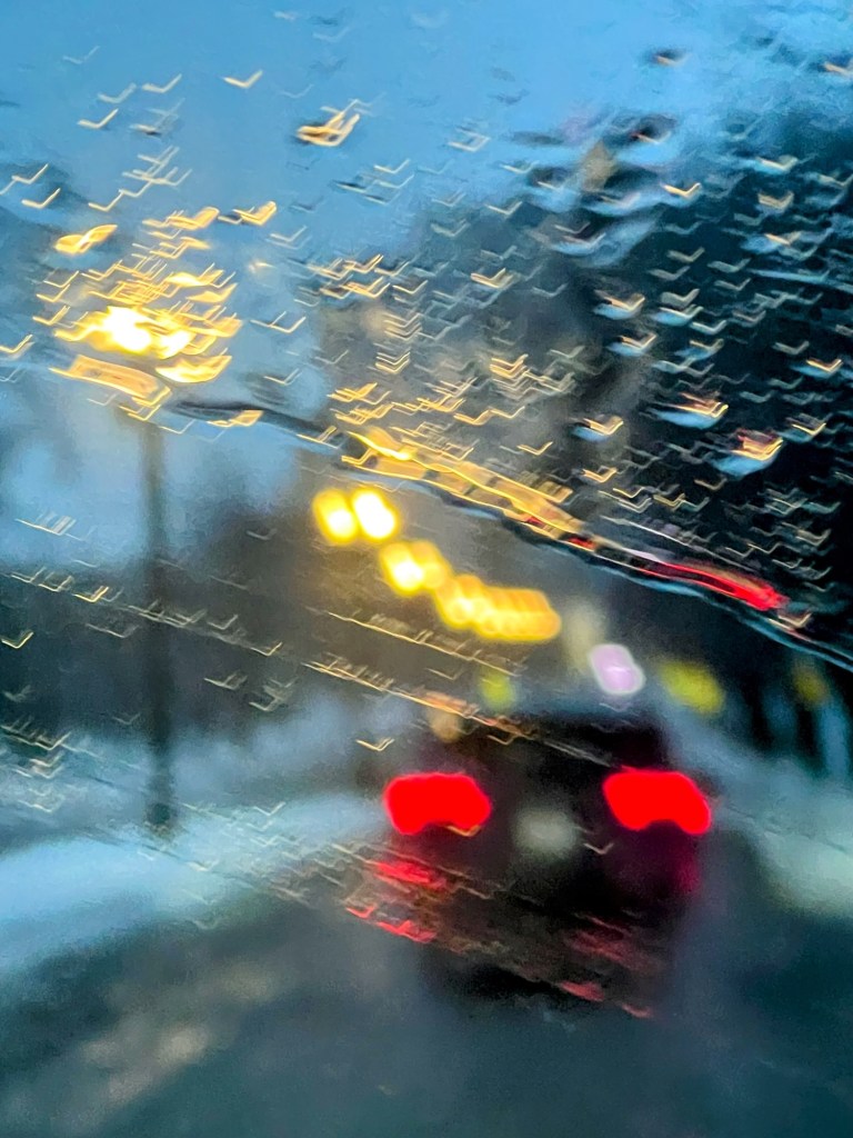 Can we just talk about how the rain froze on the windshield this morning for a minute? Like a tiny murmuration of starlings – that breathtaking, swirling ballet you sometimes see those delicate birds perform by the hundreds in the low sky.