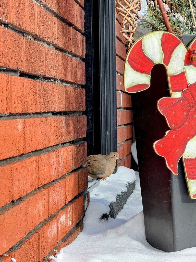 It was such a tender little moment this morning seeing that dove on the porch. She’s still out there now, her small toes curled around the edge of the doorframe, her plump body steeled against the cold.